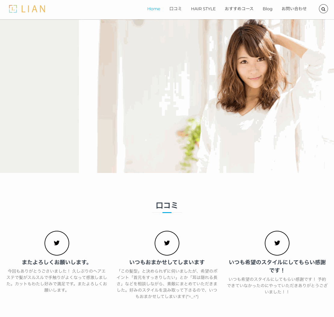 20~30代の女性のお客様が多い店舗のため、お客様の層に最適な画像素材を使用しております。
